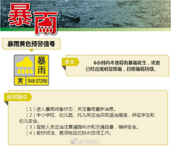 广州暴雨黄色预警:学生可自动停课 不用等待通知