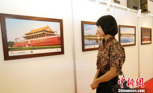 图为雅加达国立大学的印尼女生李爱茗(Dewi Suharyanti)以观展。这位连夺2017年、2018年印尼“汉语之星”大学生组比赛综合奖一等奖的女生说“太想太想去北京了”。 林永传 摄