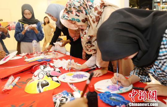 印尼阿拉扎大学孔子学院学生一首字正腔圆的《北京欢迎您》演唱拉开当天下午活动的序幕,京剧脸谱、旗袍服饰、元宵花灯、传统剪纸、毛笔书法、手工扇……看完50余幅代表北京旅游形象的图片后,观众纷纷参与到自己兴趣的公众日活动中。