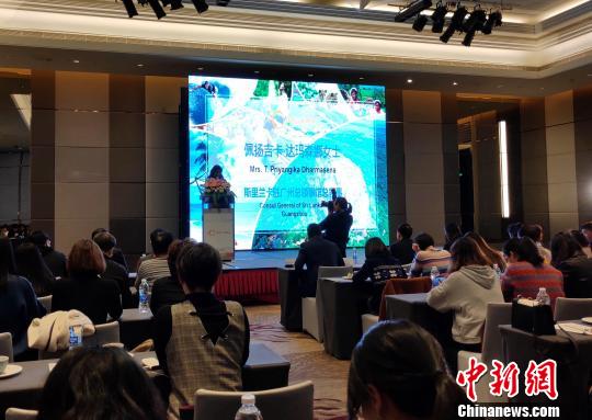 斯里兰卡驻广州总领事馆总领事佩扬吉卡·达玛森娜女士推介斯里兰卡旅游魅力。 杨伏山 摄