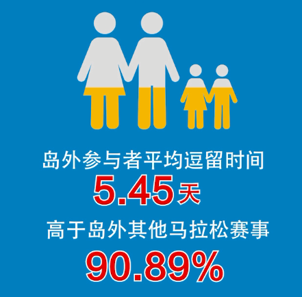 2019嗨跑节岛外参与者平均逗留时间为5.45天,较岛外马拉松赛事平均水平高出90.89%。