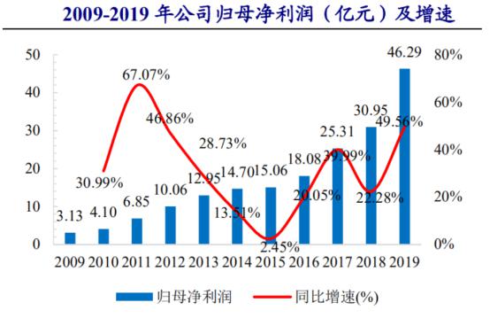 公司自 2009 年上市以来,业绩持续稳健增长。2009 年公司收入 60.65 亿元,归母净利润 3.13 亿元;到 2019 年公司实现收入 479.7 亿元,归母净利润 46.3 亿元。11 年间,公司收入增长了 7 倍,净利润更是增长了 13.8 倍。2009-2019 年,公司营业收入年均复合增长率达 23%;归母净利润年均复合增长率达 30.2%,均保持了长期高增长趋势,体现了公司基业长青、业绩长牛。
