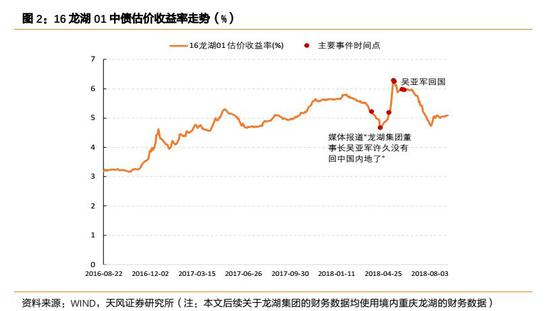 龙湖地产债券价格的涨跌来得快去得也快,事发于财经记者一篇文章[6],暗示公司实际控制人吴亚军已经许久未归国,随着吴亚军回国,公司债券估值逐步回落。