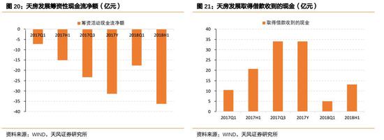 天房发展17年以来,筹资性现金流均呈现净流出的状态,2017年公司偿还了部分债务,当年筹资活动现金净流出31.41亿元,2018年净流出状态有进一步扩大的趋势,从取得借款收到的现金来看,18年公司借款收到的现金也有所减少。