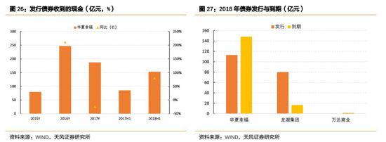 华夏幸福2018年上半年公司发行债券收到的现金同比大幅上升80%,但是从公司债券发行与到期情况来看,虽然今年公司新发7只债券,但是仍不足以覆盖今年到期的债券规模,存在一定的再融资缺口。