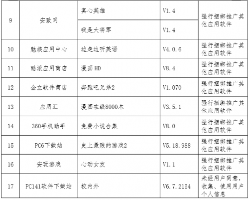 其中教育类APP“帮你写作业”、“暑假作业帮”、“边走边听英语”因存在强行捆绑推广其他应用软件的问题;“校内外”因存在未经用户同意,收集、使用用户个人信息的问题而名列其中。