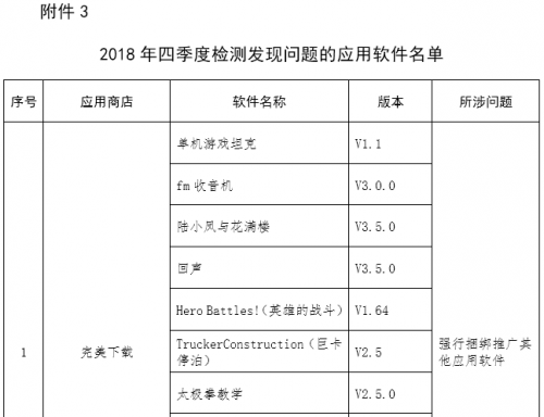 同时,四季度,工业和信息化部组织对47家手机应用商店的应用软件进行技术检测,发现违规软件43款,涉及违规收集使用用户个人信息、恶意消耗用户相关账户积分、强行捆绑推广其他应用软件等问题,已责令下架。