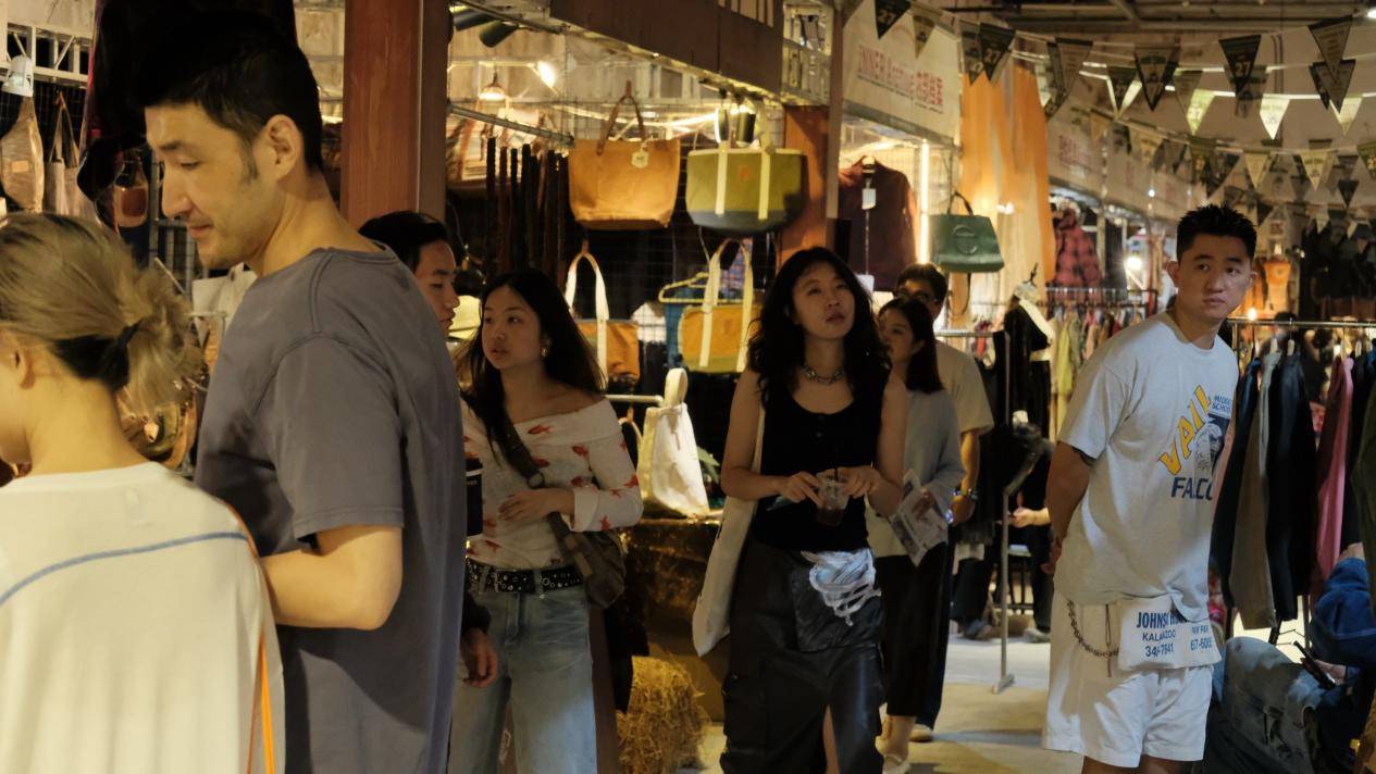 夜幕降临后,乐队演出成为绝对的主角。乐队“消失一下”以其充满活力的“卧室摇滚”风格率先开唱,随后迷幻摇滚乐队“Jupiter”登台,用极具感染力的演出征服了现场乐迷。音乐声、欢呼声与市集的灯光交织,共同构筑了一个充满复古与潮流碰撞的奇妙夜晚。