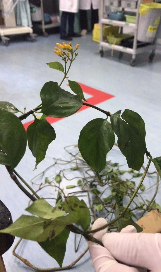 由于在现场,胡蛟龙判断患者是中毒情况,便观察周围是否有相关物件帮助诊治。结果在男子床边,胡蛟龙发现患者有自行煲服中药的痕迹,便将还未煲完的“中草药”一并带回医院检查。“听家属说是患者不舒服网购金银花治病,”胡蛟龙提到,但他检查发现,带回的药草却是带有毒性很强的断肠草,“但让人费解的是,网购的包装盒上其实就有断肠草的标识”。不过,当医生护士询问男子究竟是什么原因服用的,男子却无任何表示。
