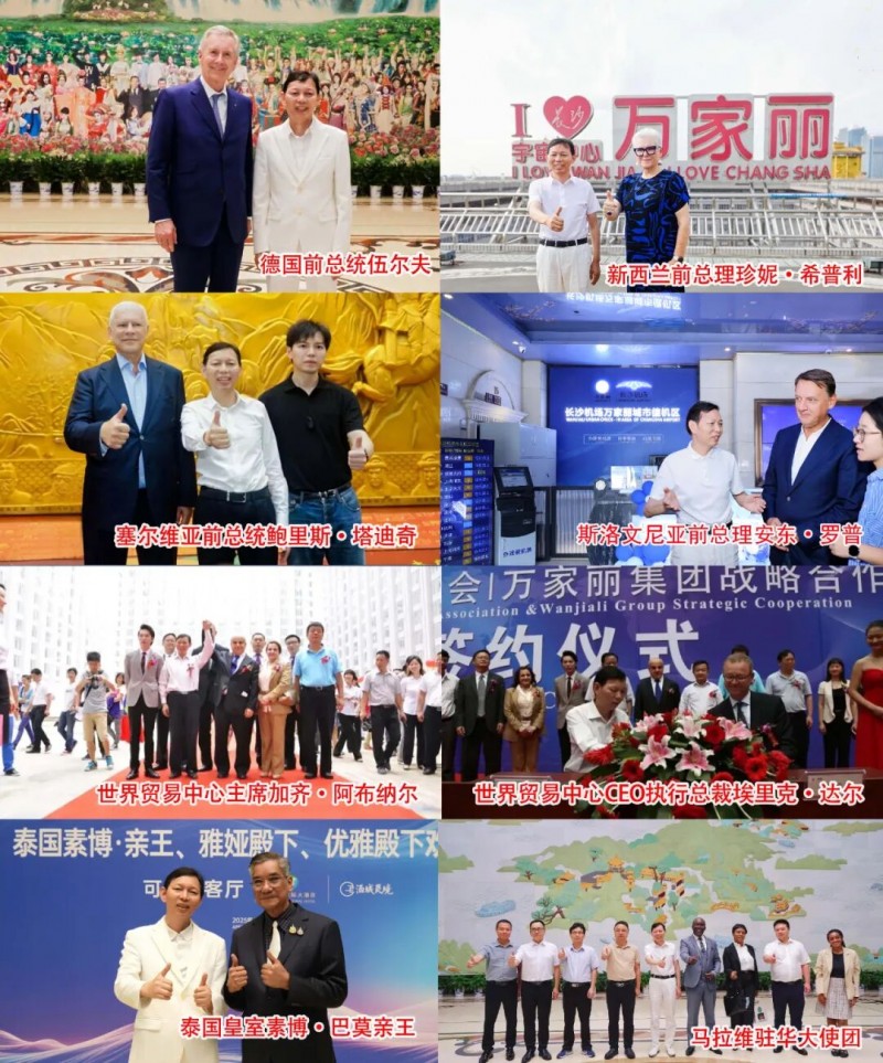 而且不止有明星,更是吸引了世界各地的元首到这里打卡购物。塞尔维亚前总统鲍里斯·塔迪奇、德国前总统伍尔夫、新西兰前总理珍妮·希普利、斯洛文尼亚前总理安东·罗普、泰国皇室素博·巴莫亲王一行以及马拉维驻华大使团等国际政要,纷纷慕名造访这片商业与文化交融的热土。世界贸易中心主席加齐阿布纳尔、CEO执行总裁埃里克达尔应邀到访宇宙中心万家丽并签订合作协议……印证了万家丽不仅是购物天堂、文化圣殿,更是一生必须要来一次的世界传奇坐标。