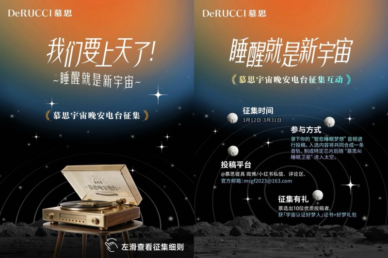 前两个维度指向产品的硬实力,而第三个维度,关乎睡眠的软温度。慕思同步推出的宇宙晚安电台,用户可在喜马拉雅App收听。同时发起的心愿征集活动,让用户的心愿梦想将随卫星一同升空。这让原本宏大的航天叙事,回归到每一个普通人睡个好觉的情感诉求上。