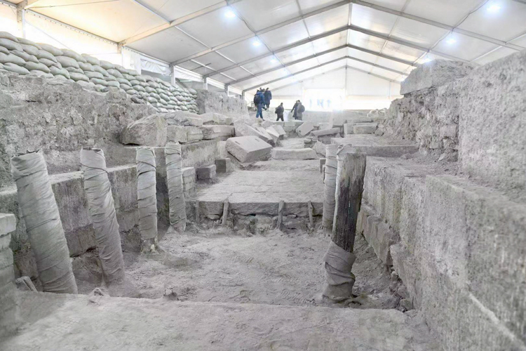 1月28日,圆明园大宫门遗址首次亮相。已发掘的大宫门片区遗址内容丰富,遗存清晰,明确地揭示了大宫门历史格局,为研究和修复这一片区历史景观提供了详实可靠的实证依据。历史上,大宫门片区是圆明园的前朝区,也是圆明园三园中最重要、规模最大的宫门区,居圆明园四十景之首。1860年英法联军火烧圆明园,大宫门被焚毁。后来,同治皇帝重修圆明园,重点修复了大宫门,但并未修复完成就停工。大宫门在随后的100余年时间里逐渐荒废。