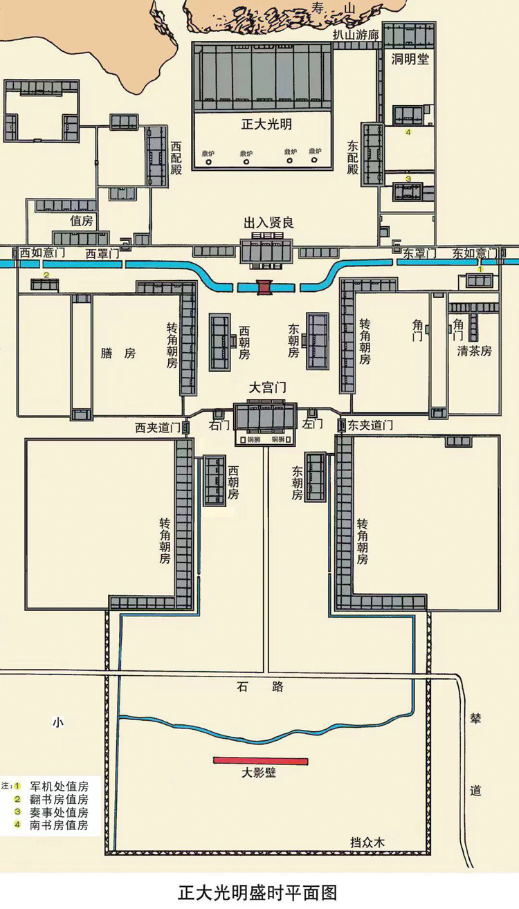 圆明园管理处对大宫门遗址进行了四期考古发掘工作,已基本发掘清理出六处主要建筑遗址和部分河道以及道路广场。